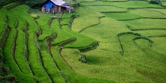 Půdu si zde farmáři pronajímají na 25 let a přibližně 1/3 úrody musí za to odevzdávat státu. Způsob hospodaření je velmi primitivní, ale v případě rýže není zřejmě ani žádná velká mechanizace možná a vzhledem ke značnému počtu mladých pracovních sil také navíc zbytečná. Jako pole se využívají i části říčních koryt, která bývají v létě pod vodou. Další „zajímavostí“ je to, že přímo v polích se nachází malé hřbitovy, přesněji řečeno skupinky hrobů, jejichž náhrobky působí v krajině velice malebně.