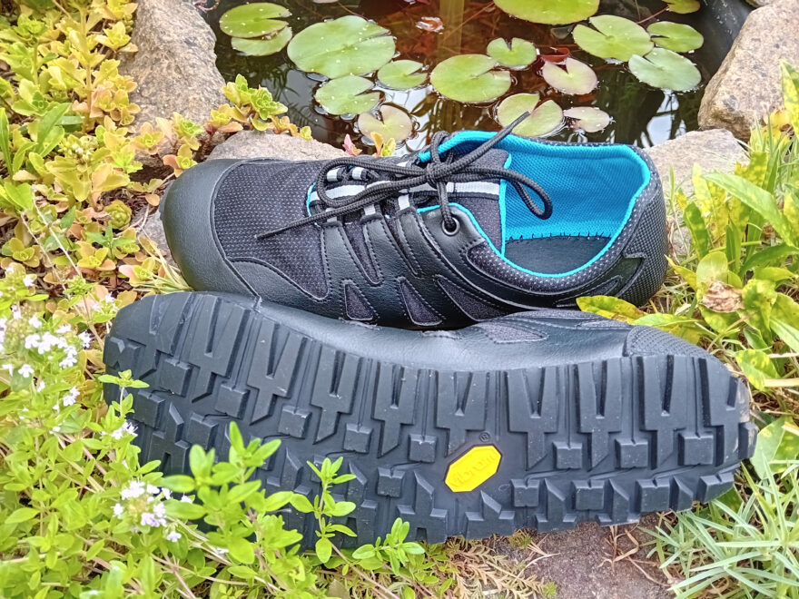 Značka AHINSA SHOES zvolila pro podrážku spolehlivý materiál Vibram. U modelu Chitra Trek&Trail v celkové výšce šesti milimetrů. Dva pro samotnou podrážku a celé čtyři milimetry pro gripy. Ty jsou poměrně ploché a široké, nepřekáží tak na tvrdším povrchu, navíc nijak zásadně nekloužou ani za mokra. Výhodou zvoleného tvaru a rozmístění gripů je výborná samočistitelnost podrážky, nezasekávají se v ní kamínky, ani se nezanáší blátem. Podrážka chrání chodidlo proti poranění, ale neomezuje v žádném pohybu. Kromě záběru (při vyjmutí stélky) o botě vlastně ani nevíte.