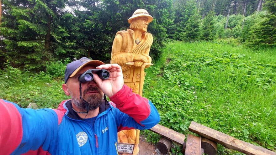Hledání nástupu pod stěnu ve vysokých Tatrách s dalekohledem NIKON 10×25 DCF SPORTSTAR EX