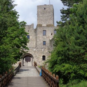Vydávám se po silnici k hradu. Cestou míjím skanzen a vystoupám na samotný vrchol. Již z dálky slyším gotickou hudbu, která se line z reproduktorů, které jsou umístěné v hradní bráně. Prohlídka je bez průvodce, a tak si ji můžu náležitě vychutnat. V pokladně jsem obdržel tištěného průvodce, podle kterého hradem postupuji. Projdu si paláce, kasematy, vystoupám i do věže. Dozvídám se, že hrad je postupně rekonstruován a musím napsat, že rekonstrukce je zdařilá.