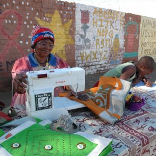 „Díky práci v dílně jsem získala sebevědomí,“ říká devětadvacetiletá žena a usedá ke stolu s šicím strojem. Bude šít panenky stejně jako dalších dvacet žen v dílně. A pak ještě budou vyšívat zvířecí motivy na látky nebo vyrábět ozdoby z korálku a pštrosích vajíček. Výrobky z dílny putují do stánků a obchodů nejenom v Namibii, ale dostanou se i do Česka. Výtěžek z jejich prodeje se pak vrací zpátky – do toho smutného, prašného místa.