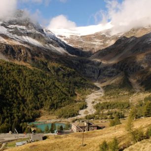 Vyrážíme na výlet po okolí. Kousek nad nádražím stojí na pěkném ostrohu ještě jeden hotel s příhodným jménem Belvedere. Odtud se vydáváme po úboční cestě s pohledy do údolí Val da Pila, kterým lze kolem lesního jezírka Lagh da l´Ombra sejít do Cavaglia. Kousek za místem zvaným Poz del Dragu lze pokračovat asi hodinku pohodlnou cestou podél vlakové galerie do sedla Bernina, ale my odbočujeme vlevo, odkud se dá jít překrásný trek k jezeru Caralin. Bohužel však v době naší návštěvy byla cesta zavřená, a tak scházíme svah vedoucí k jezeru Piz Palü a za ním pokračujeme sestupem roklí až do stanice Cavaglia. Postupně jak scházíme z vrcholových partií pod sedlem Bernina, ubývá rezavého borůvčí a přibývá zeleně lesa, zlátnoucích modřínů a pasoucích se krav.