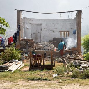 Určitě to tady berou víc jako součást života. Ale že by se tomu smáli, to určitě ne. Jen stále doufají v lepší zítřky a berou věci tak, jak přicházejí. Ve vesnici, kde jsme pomáhali s námi lidé dokonce i trochu vtipkovali. Chyběla jim třeba celá jedna stěna a vtipkovali jsme, že velká okna jsou teď v módě.
