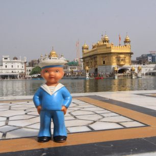 Sprostě jsem ho ukradl, a to dokonce podruhé. Motiv figurky, která se vydá do světa, se objevil ve filmu Amélie z Montmartru. Z něj ho okopíroval “únosce” anglického sádrového trpaslíka Murphyho, který se po roce vrátil na svou zahrádku s albem fotografií. Dalším postmoderním “zlodějem” toho nápadu jsem já. Na zatím poslední pozemní cestu do Indie jsem vzal gumového Pepka námořníka, který se mnou kdysi jezdil v kočárku. Prostě první cestovatelský parťák v životě.