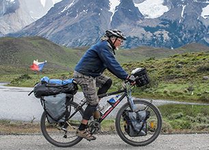 | Na kole začal Jiří Bína jezdit po padesátce a na první dlouhou cestu se vydal v 55 letech. Během následujících 15 let projel na kole desítky zemí na šesti kontinentech. Na první delší cestu se vypravil na Nový Zéland, dvakrát se vydal do Austrálie, během čtyř výprav projel Severní Ameriku od Aljašky po Mexiko. Dvakrát se vrátil do Jižní Ameriky – poprvé projel světadíl od severu z Bolívie na jih až po Ohňovou zemi a podruhé z Paraguaye a Uruguaye od východu na západ až do Chile. V Asii putoval na kole po Japonsku, Koreji, Tchaj-wanu, Vietnamu, Kambodži, Thajsku a Malajsii. Loni se už podruhé vrátil s kolem do jižní Afriky. |