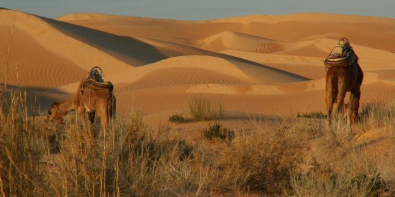 Ráno opět přichází pastevec. Snaží se povídat, ale každou chvíli odbíhá hlídat stádo. Vyjíždíme z korýtka zpátky na cestu a pokračujeme podél jezera. Po chvíli se u Ksar Lansa dostáváme na asfaltovou 46. Po 30km z ní odbočujeme přímo na jih na moc pěknou šotolinku. Okolí je čím dál tím víc vyprahlejší a pustší. Keři pokryté roviny kontrastují s pustými kopci. Objíždíme Jbel Osselat, až se dostáváme do Haffouz. Nakupujeme zásoby, Honza poprvé testuje banány a šišatá rajčata.