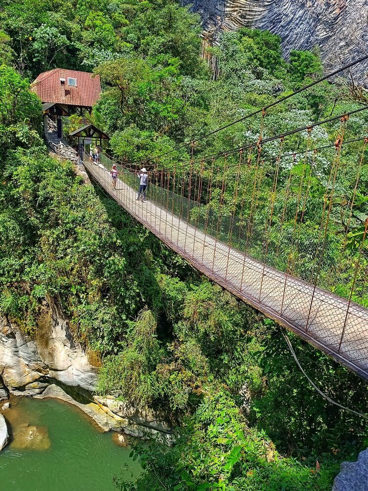 Jedná se o paže s rukama (každá je 25 metrů dlouhá), propojené skleněným mostem. Uprostřed je anatomické srdce, kterým můžete projít, a to v procházce o délce 64 metrů. Pod vámi se objeví nádherné zelené údolí, řeka Ulba a národní parky Sangay a Langanates. Je to kýč jako bič, ale aspoň jedna vyhlídka se zde zažít musí, takže jsem zvolila tu nejvíc srdeční, co to šlo. Vstupné je 5 USD, je možné platit jak kartou, tak i cash (dokonce zde rozměníte i stodolarovku) a buď jdete v ponožkách, nebo vám půjčí návleky.