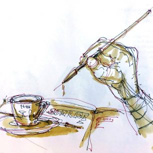 „Stačilo jedno studené kafe, výjimečná chvíle, inspirace místem a časem a hromadu digitálních fotografií, které obvykle přivážím z cest, nahradilo několik skic, které snad v budoucnu připomenou prožité okamžiky této plavby živěji než desítky skvěle vyfocených západů slunce nad mořem,“ říká Pavel. Chcete vědět víc? Pak si přečtěte poutavé vyprávění námořního kapitána Pavla Kocycha, lektora kurzu kresby v pražském ateliéru ŠUM, který při svých plavbách na moři nezapomíná tvořit.