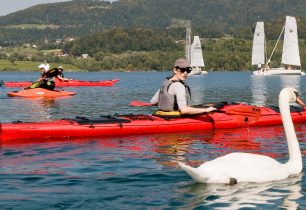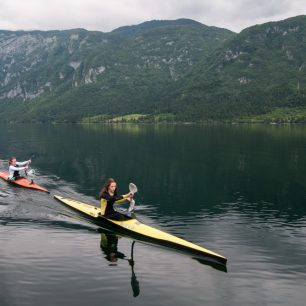 Posledním ze zajímavých jezer, která bych doporučil, je Bohinjsko jezero, které je v současné době největším jezerem Slovinska se stálou vodní hladinou (není krasové). Napájí je řeka Savica, která sbírá vodu ze sedmi triglavských jezer a těsně pod posledním z nich vytváří krásný vodopád stejného jména – Savica. Z jezera potom vytéká řeka Jezernica, která se velmi brzy spojuje s říčkou Mostnica a dohromady tvoří Savu Bohinjku, která je známým vodáckým terénem (více na str. 10). Jezero je v létě vyhledávaným cílem turistů a kajakářům poskytuje dobrou alternativu ke slovinskému moři. Díky blízkosti hor můžete navíc v jeden den podniknout třeba pěší túru po okolních kopcích a zároveň si pěkně zapádlovat na jezeře s Alpami v pozadí.