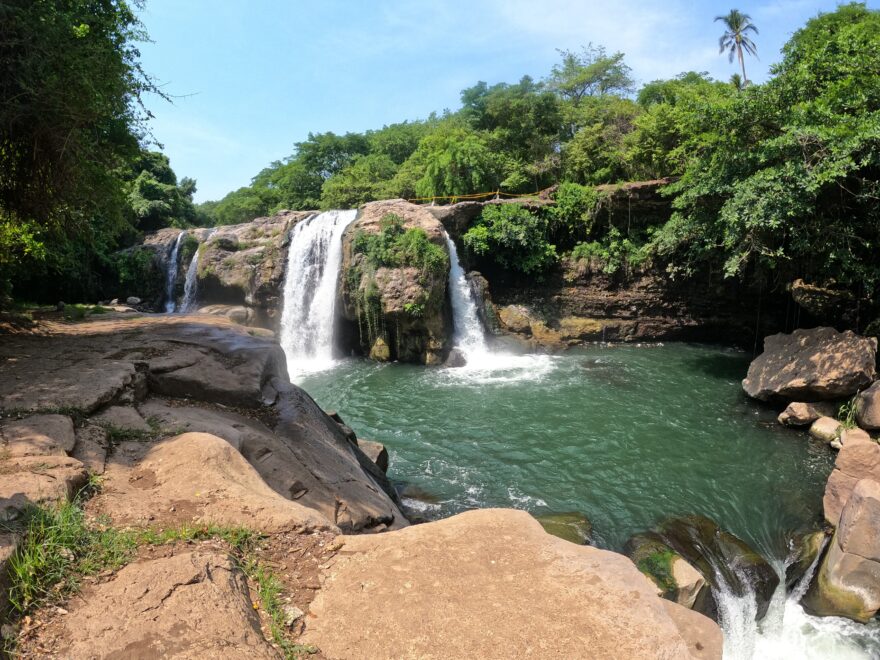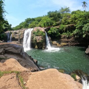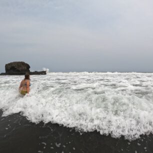 Nápad na koupele se nám zprvu zamlouval, ale když máte v téměř čtyřiceti stupních jít do horké vody, není to až tak velká sláva. Zchladit se však můžete v největšímu salvadorském jezeře Lago de Coatepeque. Najdete ho v kráteru sopky a jeho voda je příjemně chladná. Se vstupem k samotnému jezeru je to trošičku složitější, celé je totiž v obležení hotelů a privátních pozemků, takže jedna z mála možností, jak se na místo dostat, je zaplatit vstup v nějakém hotelu nebo udělat útratu v restauraci. My jsme se k jezeru dostaly přes Captain Morgan Hostel.
