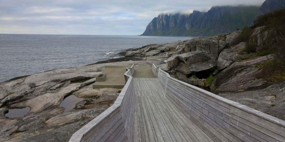 Výhledy, které se vám zde naskytnou berou dech. Jeden příklad za všechny je místo zvané Tungeneset, odkud se nabízí jedinečný pohled na Ďáblovy zuby, jak se také říká špičatému horskému řadoví Okshornan. Po cestě však kromě čarokrásné přírody narazíte i na malebné rybařské vesničky či na netypické turistické atrakce, jakými jsou největší trol v Norsku nebo zlatobarevná kadibudka podél silnice uprostřed ničeho. Jak lépe popsat Norsko jako stát blahobytu.