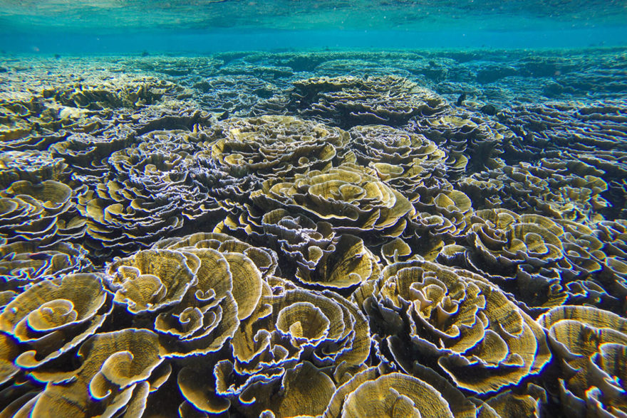 Zlaté zelí nebo růže (Pale Leaf Cabbage Coral) Garden u Fulhadhoo na Goidhoo atolu, Maledivy, foto: Lucie Mohelníková