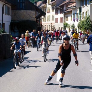 SlowUp akce ve „Velolandu“, v zemi kol ve Švýcarsku