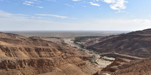 Nadlabaní tuňákem s papričkovou pomazánkou sjíždíme až dolů pod skály na konec cesty. Loučíme se s horskými oázami i Rommelkou a po chvilkovém tápání nacházíme asfaltku směřují podél skalního masívu východním směrem do Metlaoui. Kousek před městem přijíždíme k soutěsce Selja. Zajíždíme až k ní a kocháme se šedivou břečkou, která jí protéká.