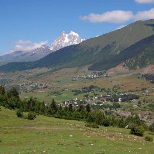 Velký Kavkaz je rozsáhlé pohoří táhnoucí se v délce 1 100 a šířce kolem 150 kilometrů na území tří států – Rusko, Gruzie, Ázerbájdžán a může se pochlubit řadou pětitisícových vrcholů. Několik jich leží také na území Gruzie a mezi ty nejznámější patří nejvyšší hora země Šchara (5 201 m) a hned po ní asi nejnavštěvovanější Kazbeg (5 033 m). Hory tvoří předěl mezi mírným podnebným pásmem a subtropickou oblastí, je zde tedy podnebí značně vlhké, a proto se i pohoří v době léta zelená.