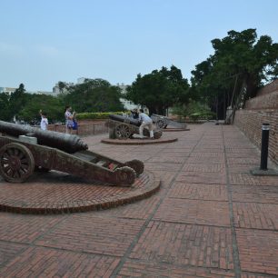 Pevnost a pozůstatky zdí z červených cihel porostlých kořeny prastarých banyánů stojí na místě dodnes. Fotogenická bílá strážní věž je už jen replikou a byla postavena až v nedávné historii.