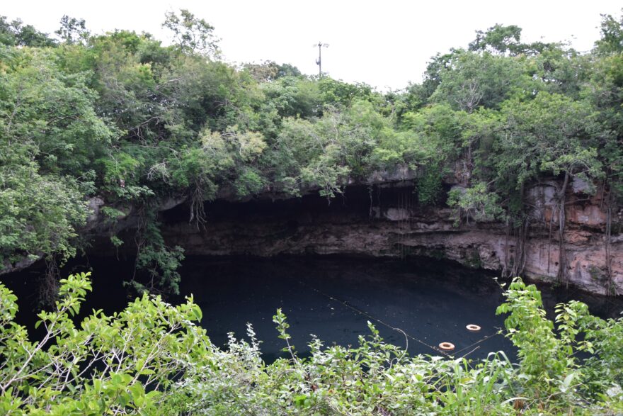 Dalším důvodem, proč zde zastavit je cenote Kikil. Co jsou vlastně cenotes? Cenotes jsou jeskynní krasové útvary, častokrát navzájem propojené, z nichž vyvěrá průzračná voda plná exotických ryb a často i želv. Okolo nich s oblibou odpočívají leguáni a bazilišci. Nad hladinou se prohánějí pestrobarevní ptáci a usedají na skalní výběžky či stromy sklánějící se k vodě. Cenotes vznikly, když na místo dnešního mexického zálivu dopadl před 66 miliony lety deseti až šestnácti kilometrový asteroid Chicxulub, z mayského jazyka „Ocas ďábla“. Obří vlna, kterou asteroid vyvolal dala vzniknout po celém Yucatánu a části Floridy těmto krasovým útvarům, které se postupně zalily vodou.