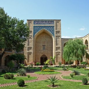 V těsné blízkosti bazaru stojí medresa Kukeldash. Nádherná, mozaikou vykládaná stavba vybudovaná v roce 1570, kde dodnes můžete vidět studující muslimy. Jako jedna z mála náboženských budov přežila velké zemětřesení v roce 1966. V 18. století sloužila tato budova jako karavanserai, místo, kde se mohli ke krátkému odpočinku uložit poutníci při putování napříč hedvábnou stezkou. Výzdoba průčelí medresy na nás udělala skutečně dojem, mistrně vykládaná mozaika se nachází i uvnitř komplexu. Co náš dojem ještě umocnilo byl malý trýznitel koček, který se nám pokoušel prodat jedno ze svých koťat na schodech před hlavním vstupem.