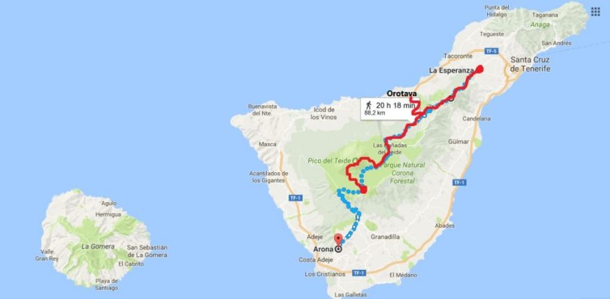 Dálková turistická trasa GR 131 se klikatí sopečným terénem přes celé Kanárské ostrovy. Na Tenerife, největším ostrově z Kanárského souostroví, měří 87 km. Tato klasická trasa je rozdělena do etap zvládnutelných za 5-6 dní a vede z vesničky La Esperanza na severovýchodě ostrova do osady Chasna u Arony na jihozápadě.