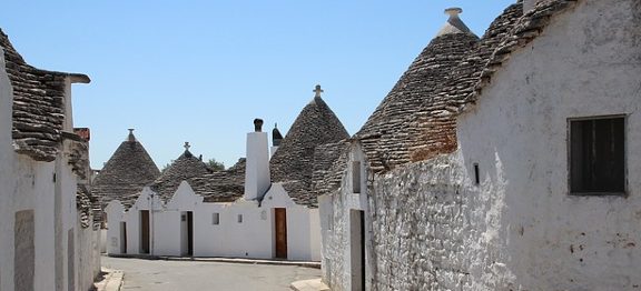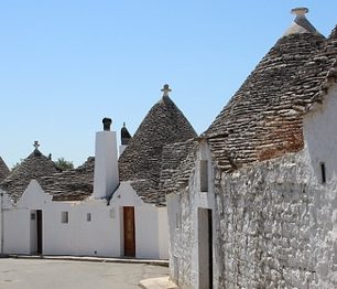 Jsou malé, kamenné, postavené na sucho bez špetky malty a staré až 700 let. Kolonie téměř 2000 bíle omítnutých domečků a kostelů najdeme v apulském městečku Alberobello, ve svazích kopce Rioni Monti a v historické čtvrti Rione Aia Piccola. Uličky mají poklidnou atmosféru a ve většině domků dodnes žijí lidé. Vystoupejte na některou ze střech a naskytne se vám výhled na moře kamenných špiček, které vypadají jako seřazená trpasličí armáda.