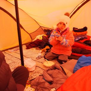 Stan má celkem tři vstupy, ale jen jeden je hlavní, prostornější a nejlépe se otvírá. V podstatě celý vnitřní prostor tvoří vnitřní ložnice, která je extrémně prostorná. Pokud ve stanu budete čtyři a dva z vás budou děti (3,5 roku a 8 měsíců), tak v něm můžete doslova tančit 🙂 My jsme tu nakonec taky trávili docela dost času, protože v říjnu už je dlouho tma a noci jsou dost chladné (ráno jsme dokonce ze stanu sklepávali jinovatku).