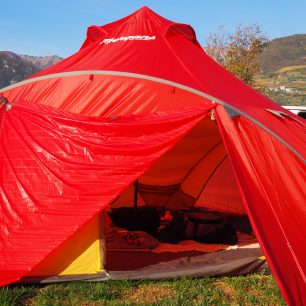 Bergans Wiglo se vyrábí ve dvou velikostech: pro čtyři a pro šest osob. V obou případech by se do prostoru měl vlézt tento počet lidí dokonce i s bagáží a myslím, že to nebude vůbec problém, koneckonců oblast spaní má 8,4 m2. My jsme si z NorskaModa.cz vypůjčili model pro 6 lidí a udělali jsme si z něj na deset dní takovou základnu na severu Lago di Garda v Arcu a vyráželi za horami a lezením do okolí.