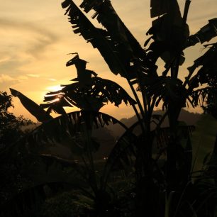 Nevadí, najdeme si svoji procházku. Popojedeme ještě kus, a potom scházíme úzkou uličkou k řece Ayung. Po příkrých vybetonovaných schodech slézáme dolů, kocháme se výhledem na řeku a zelenou džungli okolo. No, džungle v pravém slova smyslu to není, jen neuvěřitelně vzrostlé rostliny, keře, stromy. Vždycky smutním, když objevím rostlinu, zde vysokananánskou, u nás doma v květináči klempírující.