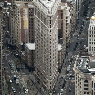 Za jeden z prvních newyorských mrakodrapů je díky 87 metrům výšky a dokončení v roce 1902 považována budova Flatiron Building. Jejími otci jsou architekti Daniel Burnham a John Wellborn Root. Stavbu trojúhelníkového „žehličkovité“ tvaru je možné nalézt na pozemku ohraničeném 22. a 23. ulicí, Pátou avenue a Broadwayí. Perličkou by mohl být fakt, že tvar budovy vytvářel u chodníku zvláštní proudění větru, které nadzvedávalo slečnám neposlušné sukně, a strážci pořádku museli nejednou odhánět muže sledující toto divadlo.