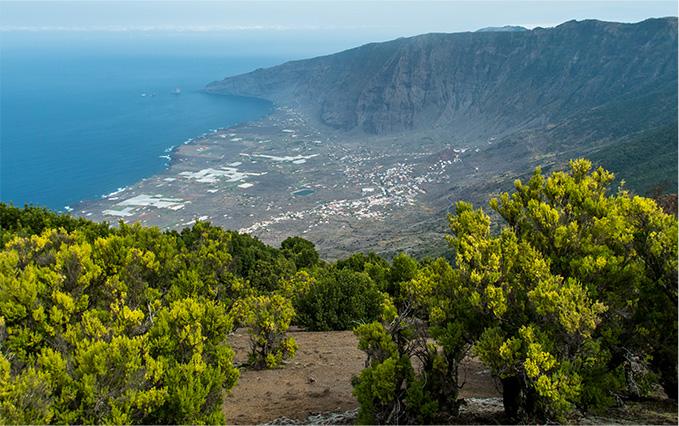 Čeká vás poměrně strmé stoupání, ale za námahu budete oceněni nádhernými scenériemi a chvílemi si budete připadat jako když procházíte ne napříč jedním, nýbrž rovnou několika ostrovy. Vavřínové lesy, vyprahlá země, oranžovočervená země, sopečná krusta, borovice poskytující kýžený stín a agáve. Ohromí vás také nádherné výhledy na oceán a poklidné zátoky. Zajímavým bodem je Arbol Santo Garoé, neboli Svatý strom. Strom je symbolem identity ostrova. Za posvátnou je považována tento jalovec proto, že jeho listy byly schopné zadržovat dostatečné množství vody pro zásobení celé populace na El Hierro.
