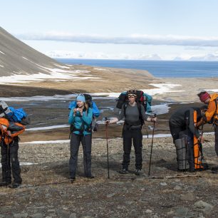 Šlo nás nakonec šest – já, Tomáš a Martinka v jedné skupině, která se dělila o jídlo a stan a Šimon s Klárou a Lukášem ve skupině druhé. Z druhé skupiny jsem předem znala akorát Šimona. Brát s sebou na trochu drsný pochod arktickou tundrou lidi, které neznám a nevím, jaké jsou jejich zkušenosti se zvládáním zimy, vlhka a dlouhých pochodů se nečekaně ukázalo jako chyba. Na mou obranu – je mnohem jednodušší být na Špicberkách v šesti lidech než ve čtyřech, protože se můžete střídat na medvědích hlídkách a pořád se u toho i vcelku vyspat. Ve čtyřech by toto byl mnohem větší problém.