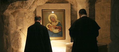 Fronta pomalu sestupuje do jeskyně pod chrámem, vzduch houstne ještě víc. Aby člověk hvězdu opravdu hvězdu spatřil, musí si stoupnout na špičky a snažit se přehlédnout ty hlavy klečící pod ním. Pořídit fotku je téměř nemožné. Pokud trpíte klaustrofobií, tak vám sem vstup nedoporučuji. Prostor je tak stísněný a vzduch téměř nedýchatelný, že budete rádi, když se co nejdříve dostanete ven. Nutno ale přiznat, že i na ateistu jako jsem já působí toto místo velmi silně.