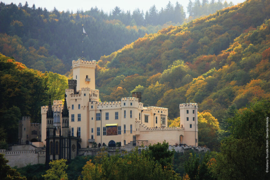 Při cestě z Frankfurtu do Koblenz zastavte zhruba v polovině cesty v Sankt Goarshausen – malebném městečku, ležícím na břehu Rýna. Jeho historie sahá až do středověku, a dnes je známé především díky svému impozantnímu hradu Rheinfels a romantické atmosféře.