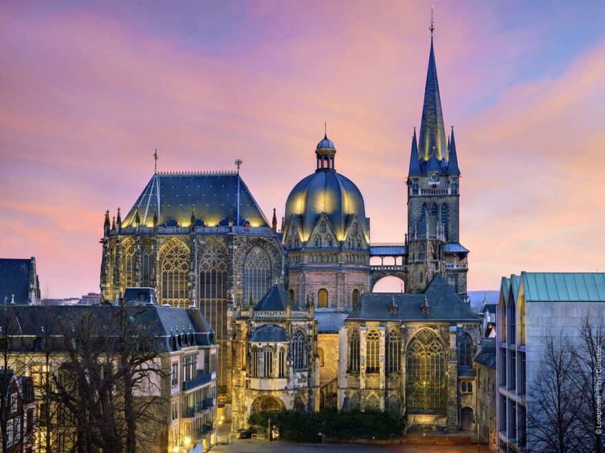 Aachenská katedrála, známá také jako Katedrála Panny Marie, která je spojena s Karlem Velikým, leží pouze 1 hodinu od Kolína nad Rýnem. Tato katedrála je významná svou architekturou a jako místo korunovace několika německých králů a královen. Aachen je také známé svými termálními prameny a historickým středem města, který je plný malebných uliček, tržišť a historických budov.