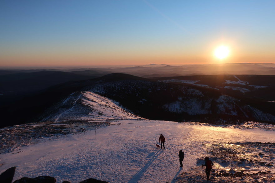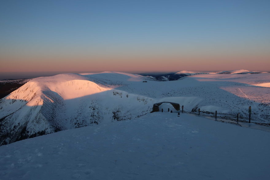 Pohled zpět směrem ke Sněžce krátce po skončení zlaté hodiny