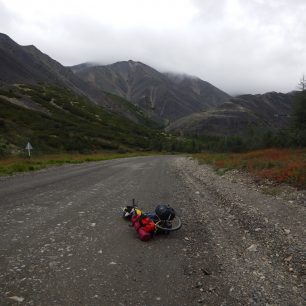 Letní etapa z Magadanu byla cesta nelehká. Jel jsem po „Tence“, jak jí Rusové říkají. Cesta je sice v horším technickém stavu než její severní sestra, je ale divočejší, s mizivým provozem a vede přes krásné hory. Je to „gruntovka“, tedy cesta bez asfaltu, zpevněná jen štěrkem a šotolinou. Má různou kvalitu. Místy dobrou tak, že se dá koloběžkovat, a místy tak, že jsem tlačil. Místy třeba chybí most.