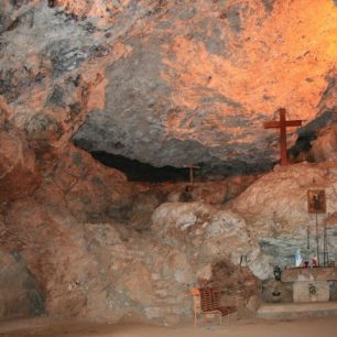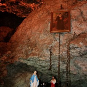 Pozornému návštěvníkovi jeskyně jistě neuniknou okovy a řetězy připevněné k přírodnímu oltáři u obrázku světce. Podle pověstí k nim byli připoutáváni posedlí či duševně choří lidé a ponecháni zde v péči světce k vyléčení. Pro nás velmi bizardní představa však byla v době minulé od věřících křesťanů chápána úplně jinak, s nadějí na uzdravení s pomocí Boha skrze světce.