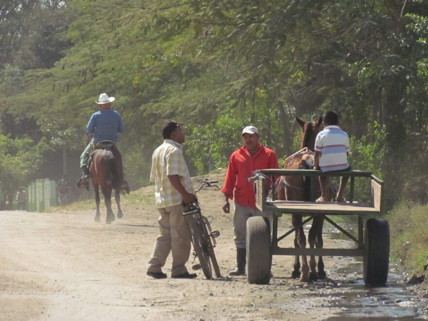 Téměř nikdo z obyvatel zde auto nevlastní. Jednak na něj nemají peníze a vlastně ho ani nutně k životu nepotřebují. Když už musí opustit domov a vyrazit za nezbytnými nákupy, navštívit doktora, nebo prodat ve městě na trhu vlastní úrodu, jedou autobusem. Lidé jsou tu přirozeně chudší než obyvatelé měst a převážně seživí farmařením. Pěstují rýži, kukuřici a fazole. Na pastvinách ve svazích kopců se pasou zejména krávy, již méně ovce nebo kozy. Kolem dřevěných domečků, z neopracovaných prken s plechovou střechou, roztroušených po oblých úbočích horského pásma, běhají slepice a prasata. Tam, kde stále lidská ruka do přírody nezasáhla, se rozpínají bohaté úseky horských deštných pralesů, z kterých se ozývá opičí vřískání černých Vřešťanů. Na střeše domků sedí alespoň jeden solární panel pro dobití nepostradatelného mobilu a žárovky k svícení po setmění. Za domkem se většinou nachází hliněná pícka sloužící k pečení kukuřičných placek „tortillas“, které místní lidé denně rádi jedí. Někteří lidé vlastní pec nemají a kupují placky od sousedů, kteří se tímto prodejem živí. Jednotlivé domečky jsou s hlavní sjízdnou cestou v údolí svázány soustavou pěších vyšlapaných cestiček. Každé ráno po hlavní cestě vedle jednoho ranního autobusu mířícího do města, projede ještě omlácený náklaďáček, který sesbírá před dřevěnými branami farem konve plné čerstvě nadojeného mléka. Hlavními dopravními prostředky jsou bez výjimky motorky a koně. Na koni tu zdatně umí jezdit každý, od malého dítěte po starého člověka. Každá rodina také několik koní nutně vlastní a denně k dopravě a práci používá. Místní chlapi na koních jsou jak vystřižení z nějakého filmu o divokém americkém západě. Sebevědomě sedí v třásněmi bohatě zdobeném koženém sedle a hlavu jim stíní široký klobouk. Velmi často obouvají gumové holínky, na kterých mají přidělané ostré ostruhy. Přes kalhoty si někteří z nich také oblékají ochranné kožené návleky. Na opasku s mnoha železnými cvočky a velkou sponou, v koženém, ručně vyšívaném pouzdře schovávají nůž. Ovšem nejkrásnější, a pro tento kraj tak typická, jsou kožená ručně šitá pouzdra pro dlouhé pracovní mačety, s do copů svázanými třásněmi a do kůže vyrytými motivy, která jsou povinnou výbavou každého kovboje.