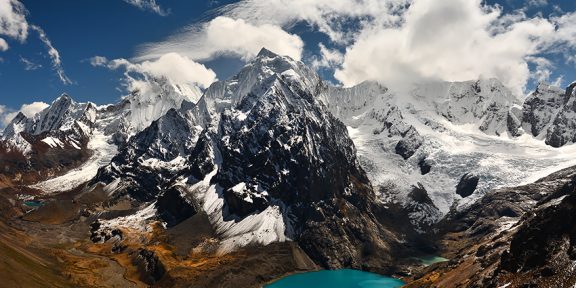 Po menší koulovačce nastal čas k návratu. Průvodce chtěl jít stejnou cestou zpátky, což se nám nelíbilo, a protože nás Peruánci podpořili, prodloužili jsme si výlet a udělali okruh okolo jezer. Každá z lagun – s názvy Chuspicocha, Lasuntay či Cocha Grande – má trochu jiný odstín modré, ve kterém se zrcadlí bílé vrcholky masivu. Kdoví, jak dlouho pod prudkým sluncem ještě zdejší ledovce vydrží.