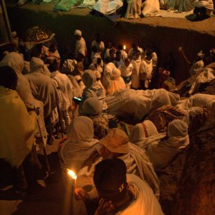Noční mše v nejdůležitějším lalibelském kostele je to, co sem poutníky přitáhlo. O půlnoci si stoupnou a zapálí svíčky a budou se modlit. Do půlnoci budou spát na zemi, jako bílé stádo ovcí, obalení ve svých šálách. A až modlitba ráno skončí, dokoupí poslední suvenýry a rozprchnou se do svých domovů tak, jak přijeli. V džípech, minibusech, v náklaďácích a někteří pešky, tak jak přicházeli po uplynulá staletí.