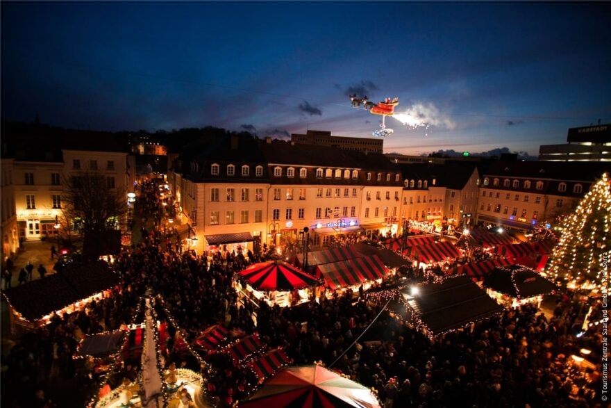 Dvakrát denně (ve středu pro děti dokonce třikrát) se vznáší na obloze létající Santa a vypráví příběh soba Rudolfa s červeným nosem, který je vrcholem vánočního trhu v centru hlavního města Sárska. K dalším atrakcím patří ruské kolo a udržitelné umělé kluziště. Nezapomenutelný dojem zanechávají také tisíce světel a dřevěné stánky, počínaje tržištěm Sankt Johann a konče galerií EUROPA.