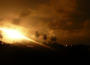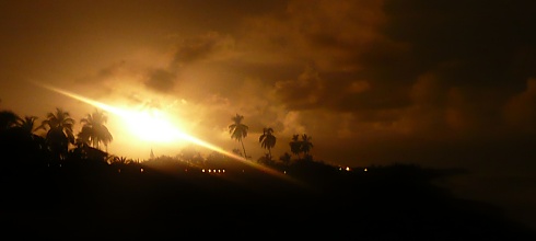 Asi za dvacet minut to nastalo. Obzor se najednou celý rozzářil a bylo světlo jak ve dne. Přirovnal bych to k blesku, který nepřestal svítit. Siluety palem na obzoru působily exoticky. Světlo oslňovalo naše oči, které již byly přivyklé na tmu. Během pár sekund se začala záře zvedat a teprve pak k nám dorazilo ohlušující hřmění motorů. Zhruba půl minuty trvalo, než raketa zmizela za oblaky. Ještě další dvě nebo tři minuty byla obloha rozzářená a dozníval hluk raketových motorů. Za několik minut bylo po všem.
