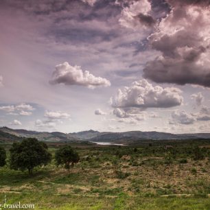 To se na konci dne změní a přede mnou se vynořuje strmá horská stran, do které se zakousnu a po necelé hodině stojím na její hrané. Změnil jsem během hodiny nadmořskou výšku o šest set metrů a užívám si šálek místní organické kávy při úžasném výhledu až na osmdesát kilometrů vzdálené pobřeží. Z pláně vystupují jednotlivé pahorky, které v oparu vytvořeném v odpoledním slunci připomínají obří stany na doširoka rozprostřeném zeleném kempovém tábořišti za ranního rozbřesku.