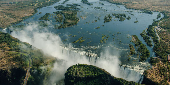 Jedno z nejhezčích míst černého kontinentu leží na hranici mezi Zimbabwe a Zambií. Tady padá do hluboké soutěsky porostlé tropickou vegetací řeka Zambezi a vytváří tak Vikroriin vodopád. V těsné blízkosti můžete navštívit botswanský národní park Chobe, v jehož mohutné řece se koupou sloni i hroši a na travnatých pláních okusují žirafy stromy, na nichž zrají plody maruly, lahůdky pro šimpanze, antilopy i surovina pro výrobu typického smetanového likéru.