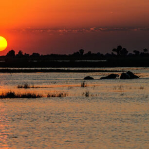 Vedle džípů slouží jako pozorovací dopravní prostředek v Chobe i čluny plující po řece vstříc zvířatům. Během hodiny uvidíte impaly pijící u břehu, několik orlů, hejno kroužících supů, krokodýly lenošící na břehu, plameňáky a bezpočet dalších ptačích druhů. Vrcholem je většinou pozorování hrochů, kteří v chladivé řece nacházejí ideální podmínky pro odpočinek i pastvu na podvodních travách.