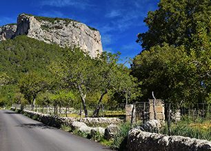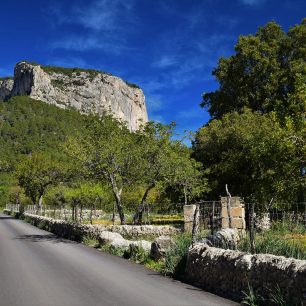 Cesta z Alaró vede nejprve po silnici vedoucí kolem políček a pozemků. Stoupání je zatím pozvolné. Celkově je nutné překonat převýšení 570 metrů. Skalnatý vrchol Puig d’Alaró jsem měla stále před sebou a jak jsem se postupně přibližovala, pomalu jsem rozeznávala první části středověkého opevnění. Na samém okraji nejblíže k údolí stojí věž Torre de Sa Cova a někde poblíž ní je ve skále jeskyně Cueva de Sant Antoni.
