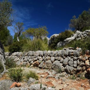 Turistické značení občas odbíhalo z asfaltky na starou kamenitou stezku. Na svazích tu rostou olivovníky a pasou se ovce. Zvuk jejich bečení, který se jako ozvěna odráželo od skal, mi připomněl pohádku Třetí princ. Chyběl už jen Pavel Trávníček a Libuška Šafránková. Na několika místech ve svahu kolem silnice je možné si všimnout malých prohlubní, kde právě ony ovce běžně odpočívají.