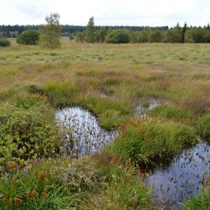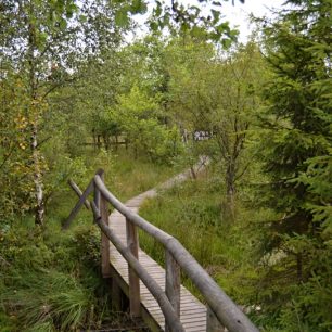Po dřevěných lávkách, které jsou položeny na kůlech, zaražených do pevnějšího podloží, se přesunujeme napříč vřesovištěm, vše působí téměř idylicky a normálně – vzrostlá tráva, kvetoucí rostlina a sem tam stojící keř či strom. Jen nenápadné tmavé tůně mezi trsy trávy naznačují, že se nenacházíme na obyčejné louce. Dříve než se stačíme pořádně rozhlédnout, máme v zádech další přeháňku. Prudký vítr, drobný studený déšť, zatažená obloha – to vše mění dojem a atmosféru tohoto místa.