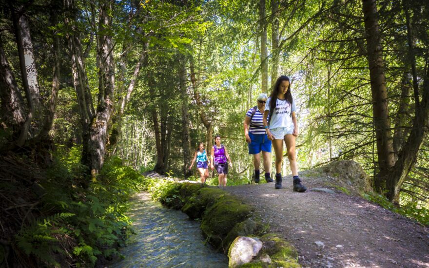 Putování podél suonen (historických zavlažovacích kanálů) je ideální způsob, jak strávit den s dětmi v horách. Tyto stezky jsou zpravidla téměř bez převýšení, vedou lesem nebo podél skalních stěn a nabízejí jedinečný kontakt s vodou. Děti mohou po cestě brouzdat, stavět hráze z kamínků nebo jen sledovat, jak voda proudí.