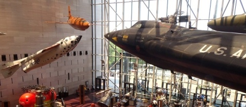 Už při vstupu do velké haly vás uchvátí opravdová letadla visící ze stropu. Prohlédnout si můžete například expozici Charlese Lindbergha, který podnikl první sólový přelet nad Atlantikem v roce 1927 a mnoho dalších. Pokud vám samotné exponáty nepostačí, lze po zaplacení vstupenky zhlédnout také tematické filmy. Stejně jako ve všech ostatních muzeích je i zde možnost nákupu suvenýrů, a tak si domů můžete přivézt třeba látkový skafandr.
