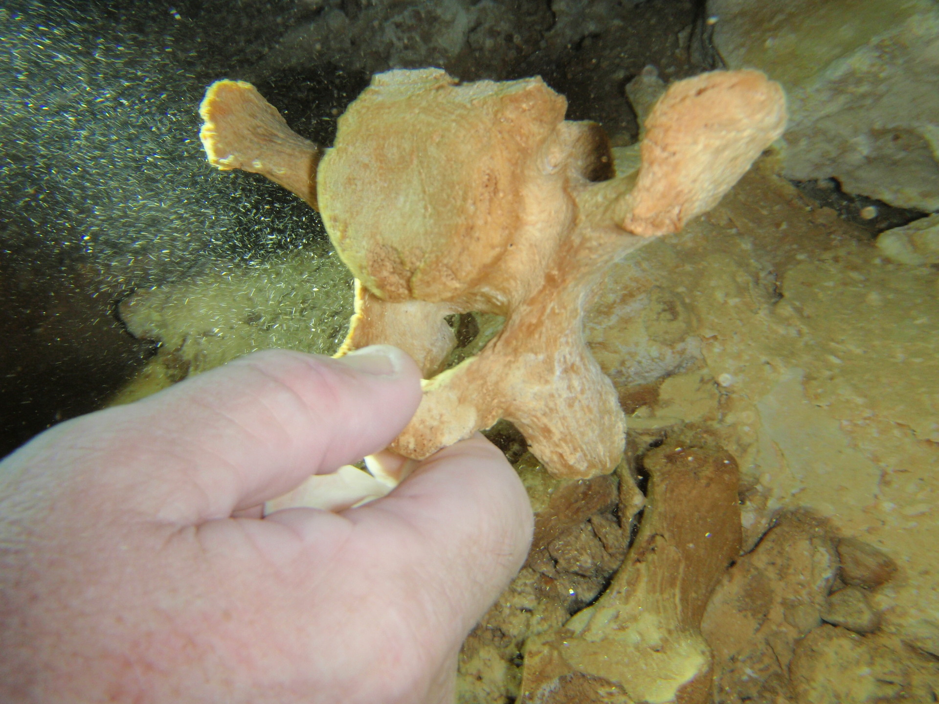 Zůstali jsme s Mírou sami. Zbytek výpravy odletěl před týdnem do Čech. Ponory v jeskyni Tux Kupaxa jsou stále delší a delší. Do zadních částí jeskyně se dostáváme pomocí podvodních skútrů, které až pětkrát urychlí náš postup vpřed. Máme tak mnohem víc času na mapování a kreslení zaplavených chodeb. Nebezpečí, plynoucí z možnosti poškození skútru, eliminujeme zvýšením počtu lahví se vzduchem na čtyři pro každého. Pod vodou trávíme pravidelně téměř čtyři hodiny. Postupně uzavíráme skládačku jednotlivých úseků do celkové mapy jeskyně. Původních 8,5 km jsme natáhli objevením neznámých prostor i spojením s dalším systémem na konečných 15 200 m. Tux Kupaxa se stává osmým nejdelším vodou zaplaveným systémem na Yucatánu. V průběhu mapování v nových částech jeskyně jsme objevili kosterní pozůstatky prehistorických živočichů na dvou místech. Jedná se pravděpodobně o mohutné pozemní lenochody. Náš úspěch ještě doplňujeme filmováním před rokem nalezené nejzachovalejší kostry lenochoda vůbec. Dle vyjádření jednoho z předních specialistů na tyto obratlovce Dr. McDonalda se jedná o úplně nový druh lenochoda. Kostru jsme nalezli v sousedící jeskyni Koox Baal. Je vzdálená 45 minut jízdy skútrem od vchodu. O naše objevy se začínají zajímat přední paleolontologové.